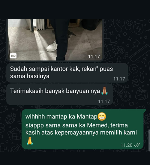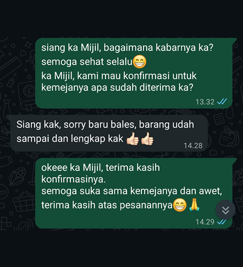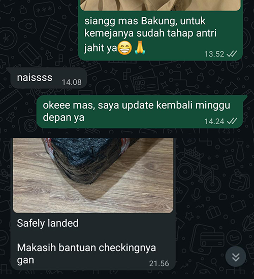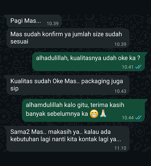 Setelah barang selesai dan sesuai, kami meminta pelunasan agar barang bisa dikirim kepada anda.